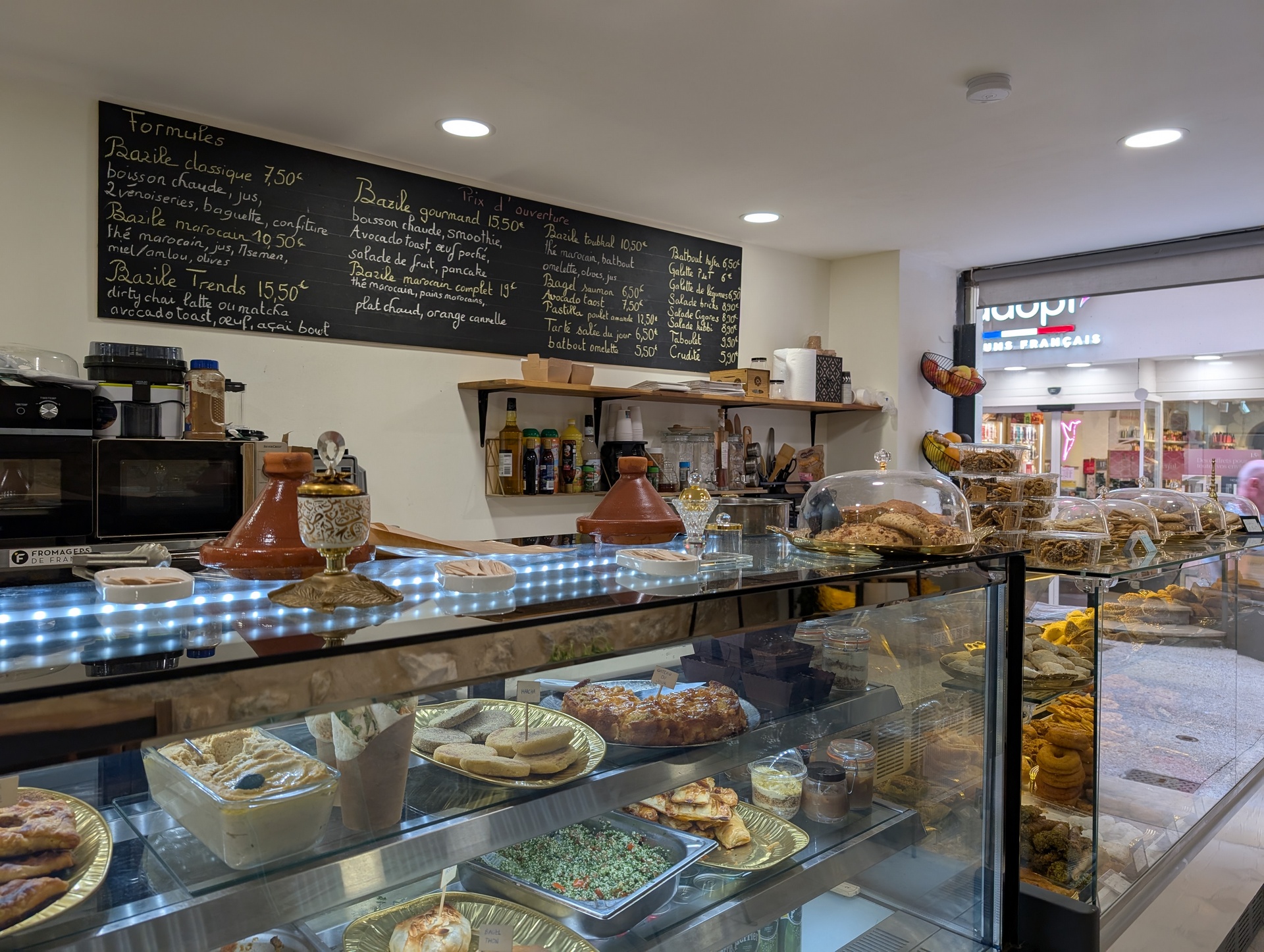Bien sûr ! Bazile & Saveurs est avant tout un lieu de partage. Installez-vous, prenez un thé parfumé, un matcha ou un jus de fruits frais et profitez du cadre chaleureux.