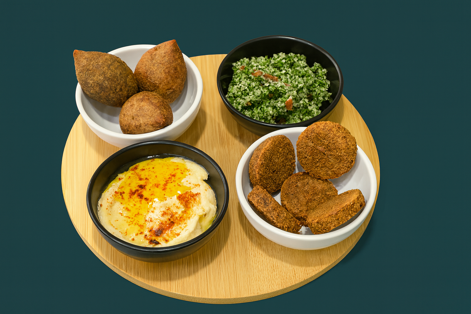 Houmous, falafels, taboulé, kebbi